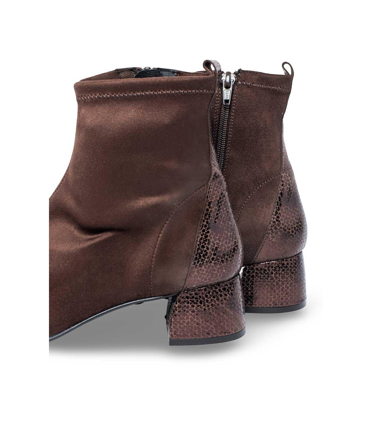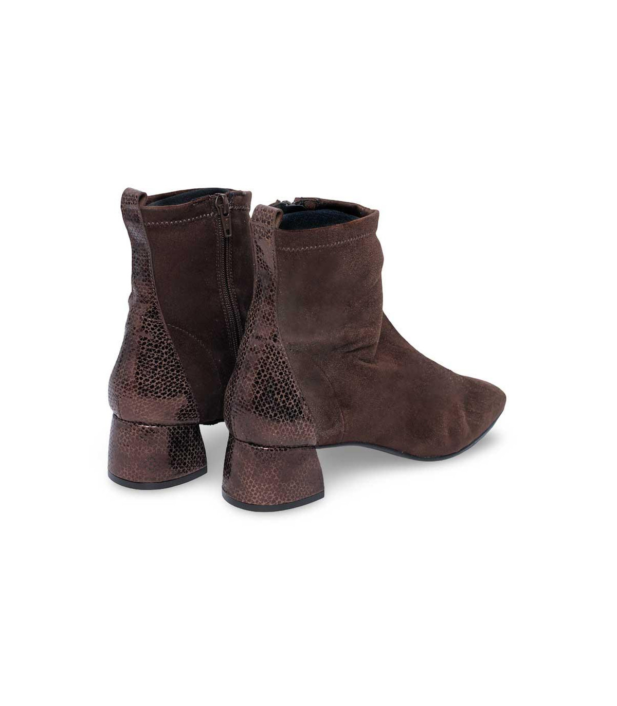 Botines con tacón de la firma Strover | Material exterior: Antelina | Forrado interior: Licra | Plantilla: Piel | Suela: Sintético antideslizante | Altura: 5 cm de tacón. Hecho en España.