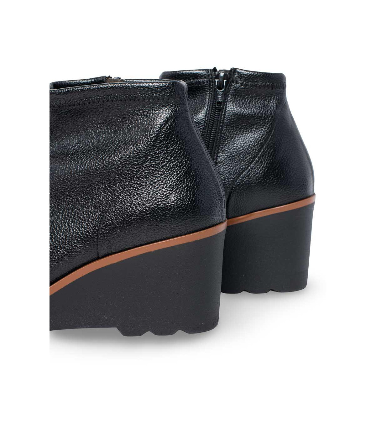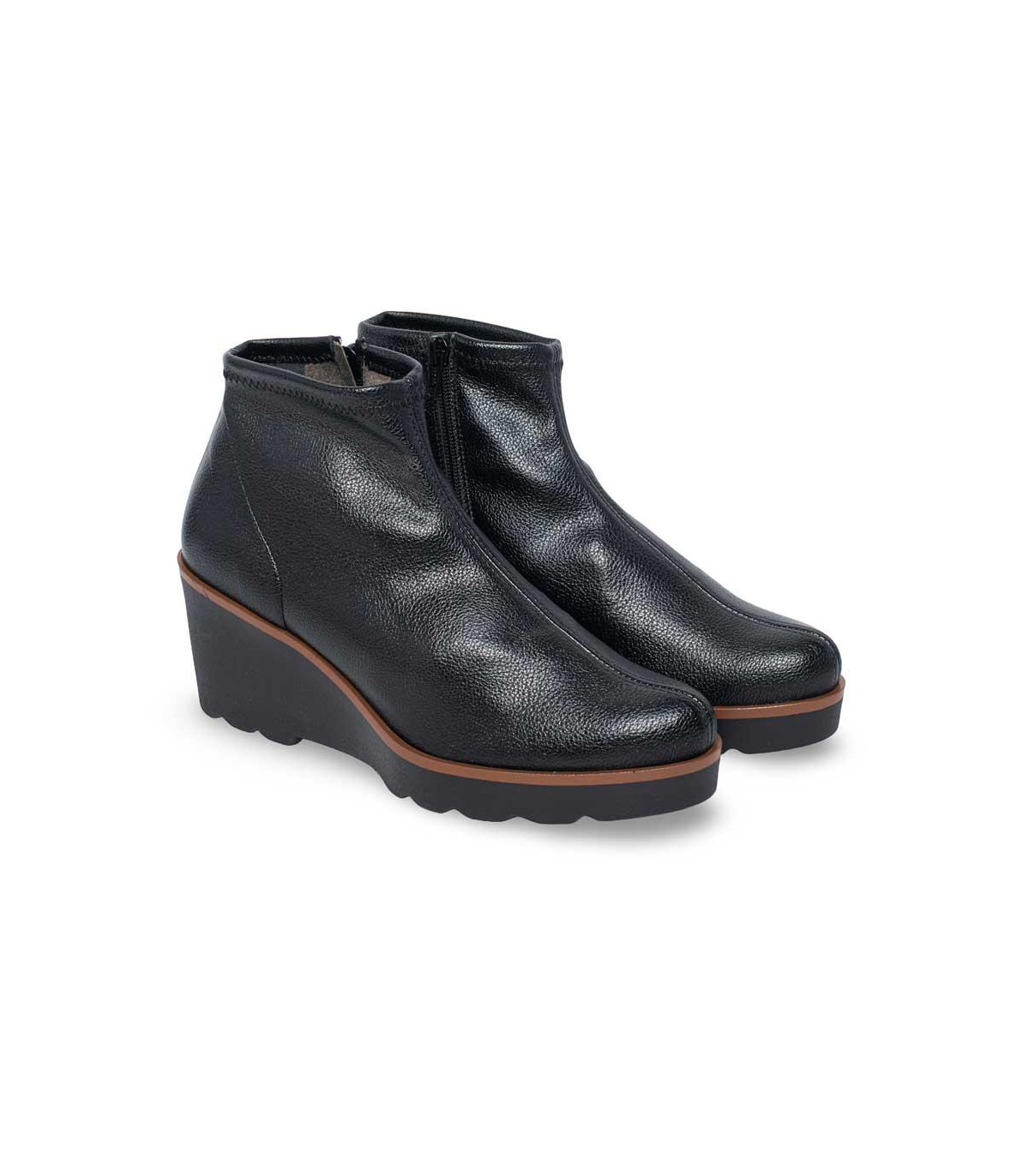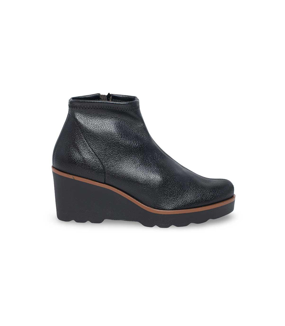 Botines con cuña y cordones elásticos de la firma Strover | Material exterior: Piel | Forrado interior: Pelo | Plantilla: Piel (PLANTILLA EXTRAÍBLE)| Suela: Goma | Altura: 3,5 cm de cuña. Hecho en España.