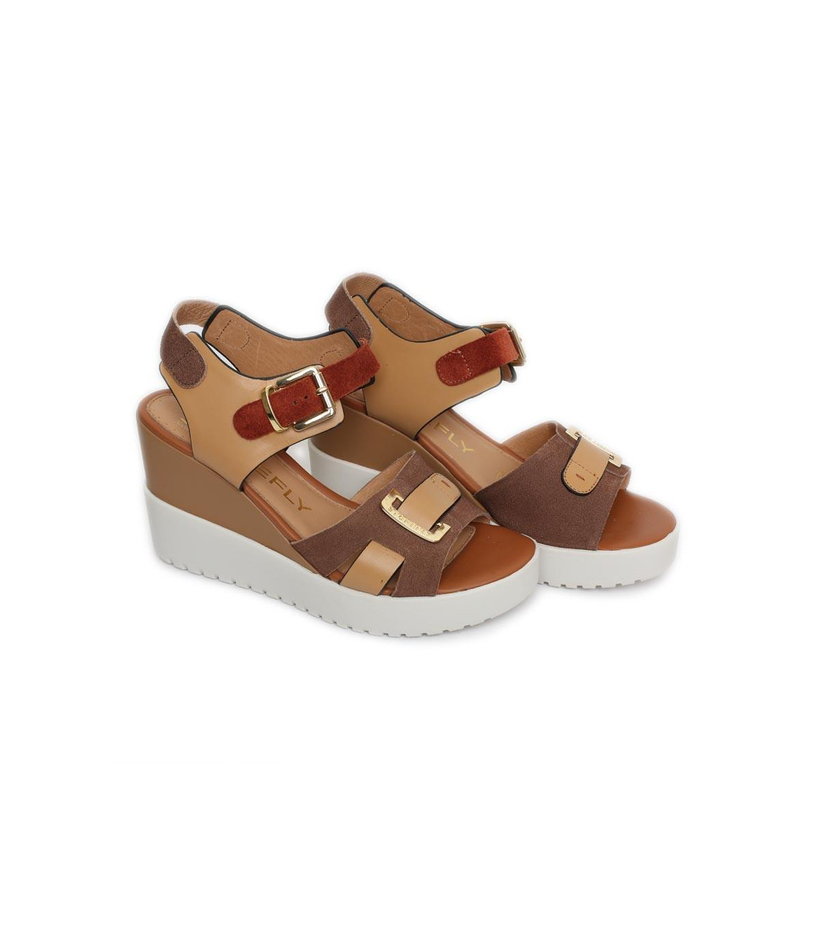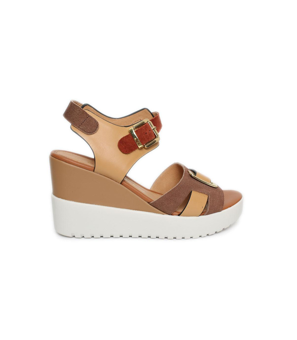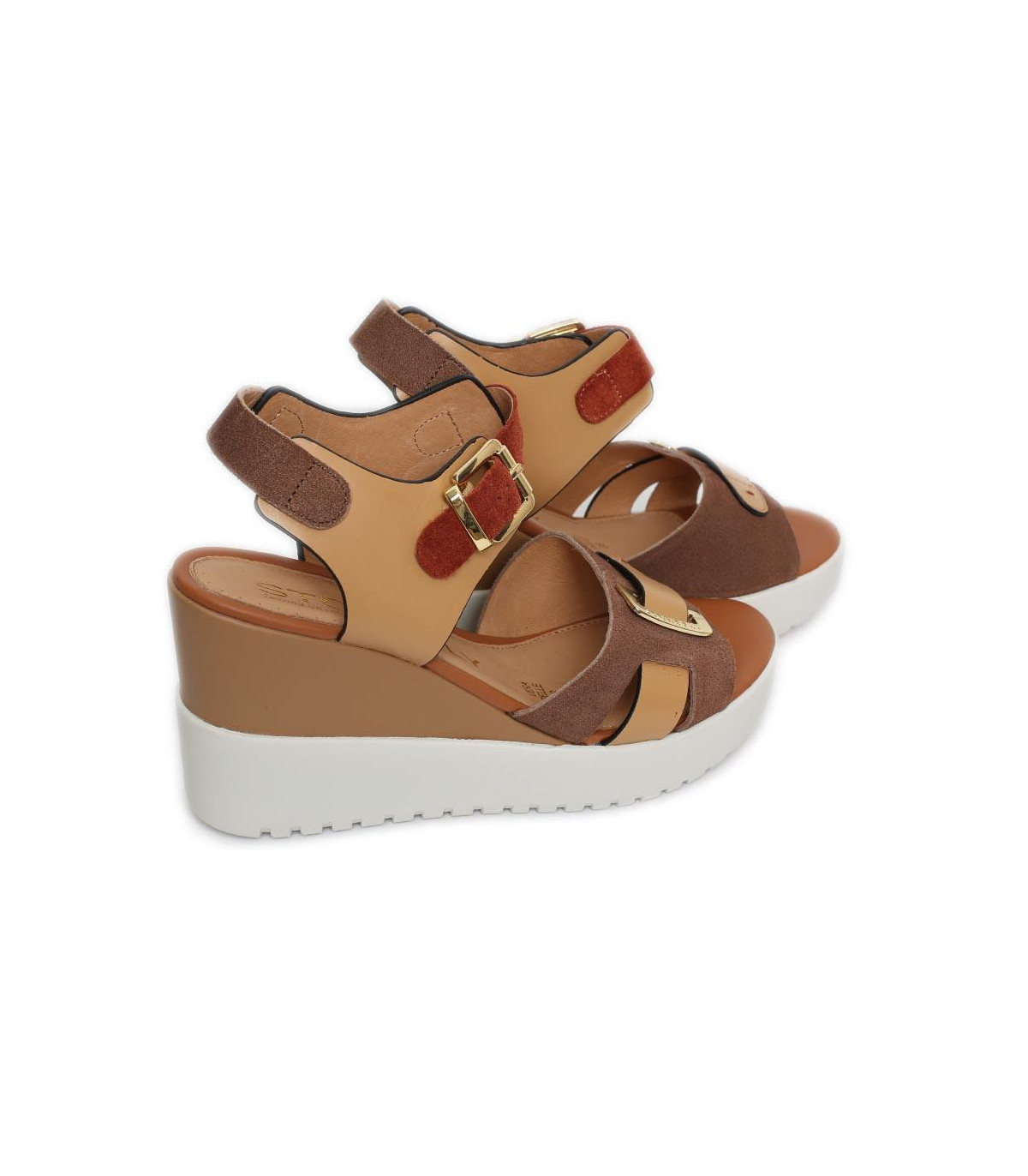 Sandalias casual con cuña y plataforma de esparto de la firma Gaimo | Material exterior: Piel | Forrado interior: Piel | Plantilla: Piel | Suela: Goma | Altura: 5 cm de cuña | Hecho en España.