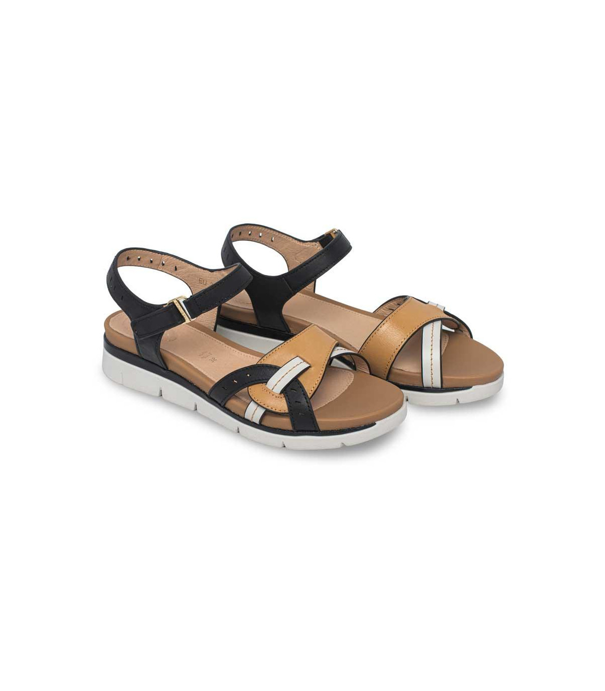 Sandalias casual con cuña de la firma Bueno | Material exterior: Piel | Forrado interior: Piel | Plantilla: Piel | Suela: Goma | Altura 3 cm de cuña | Hecho en España.