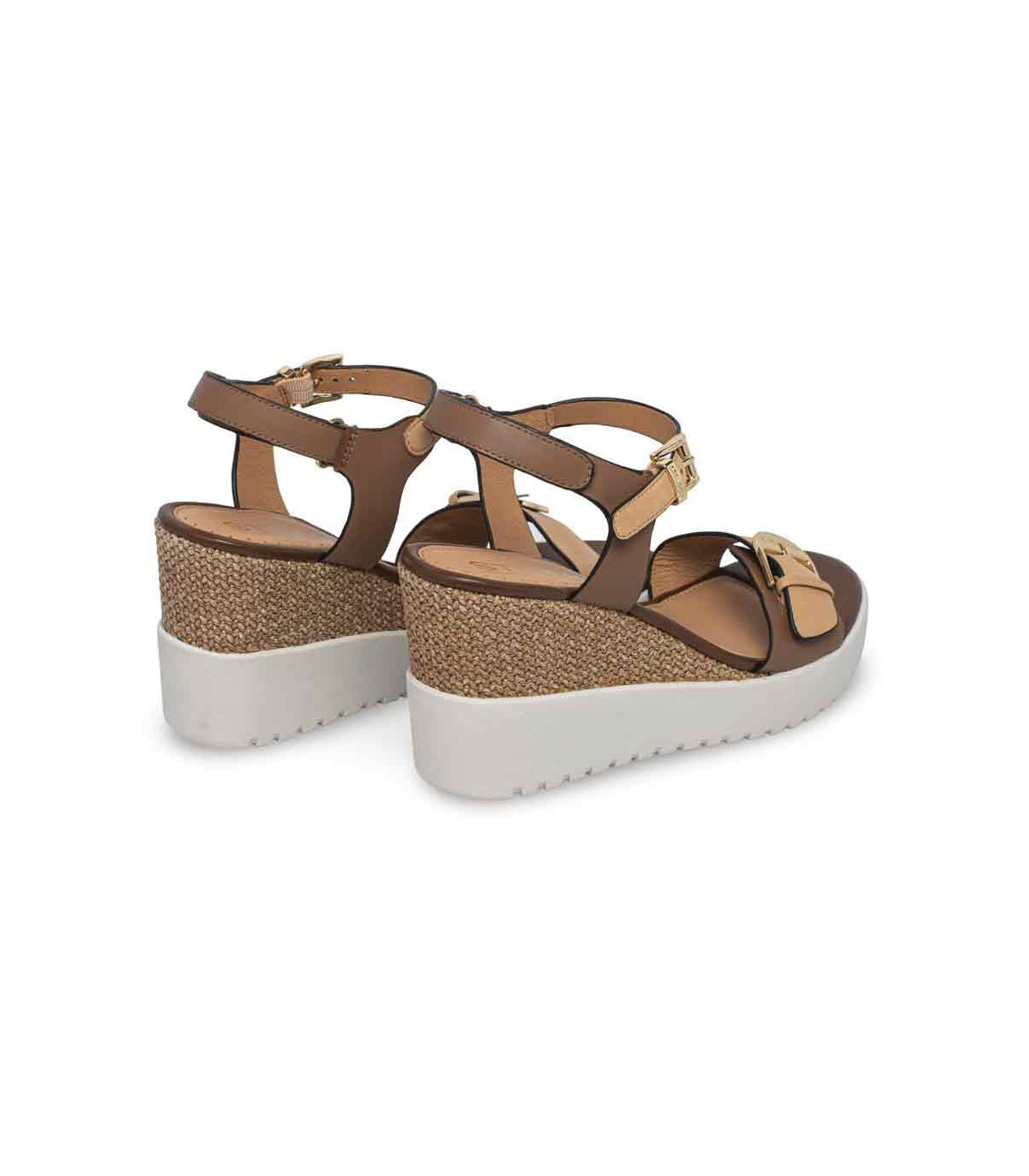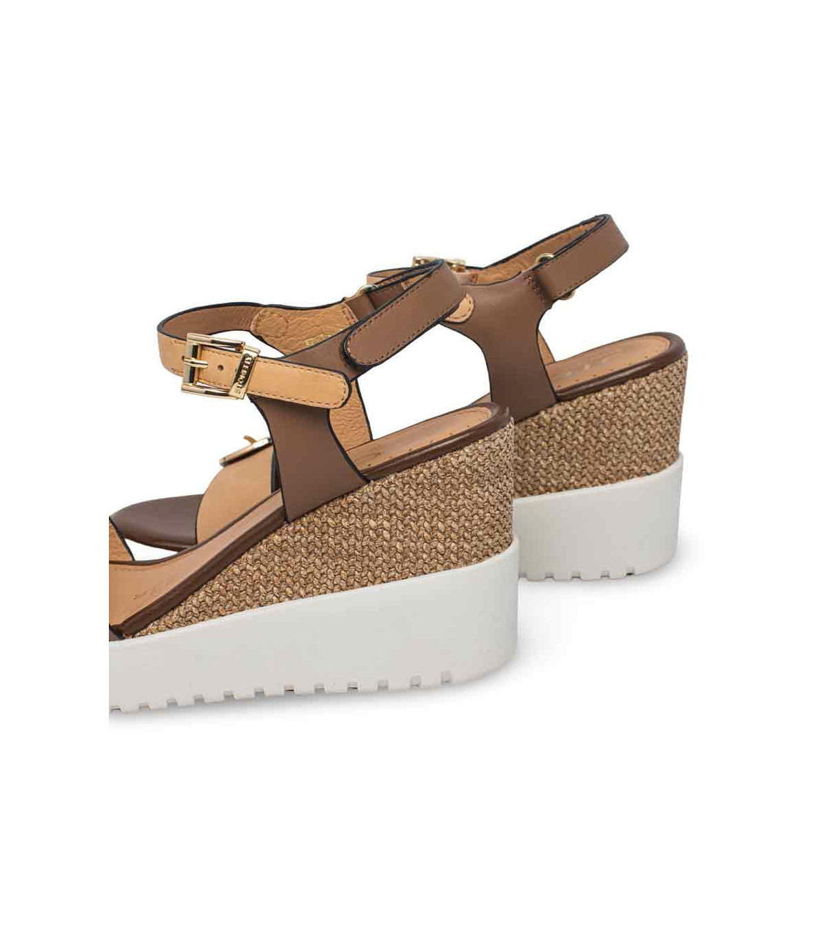 Sandalias de esparto con cuña de la firma Gaimo | Material exterior: Piel | Forrado interior: Piel | Plantilla: Piel | Suela: Goma | Altura: 7 cm de cuña | Hecho en España.