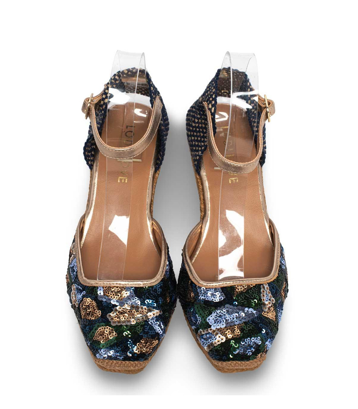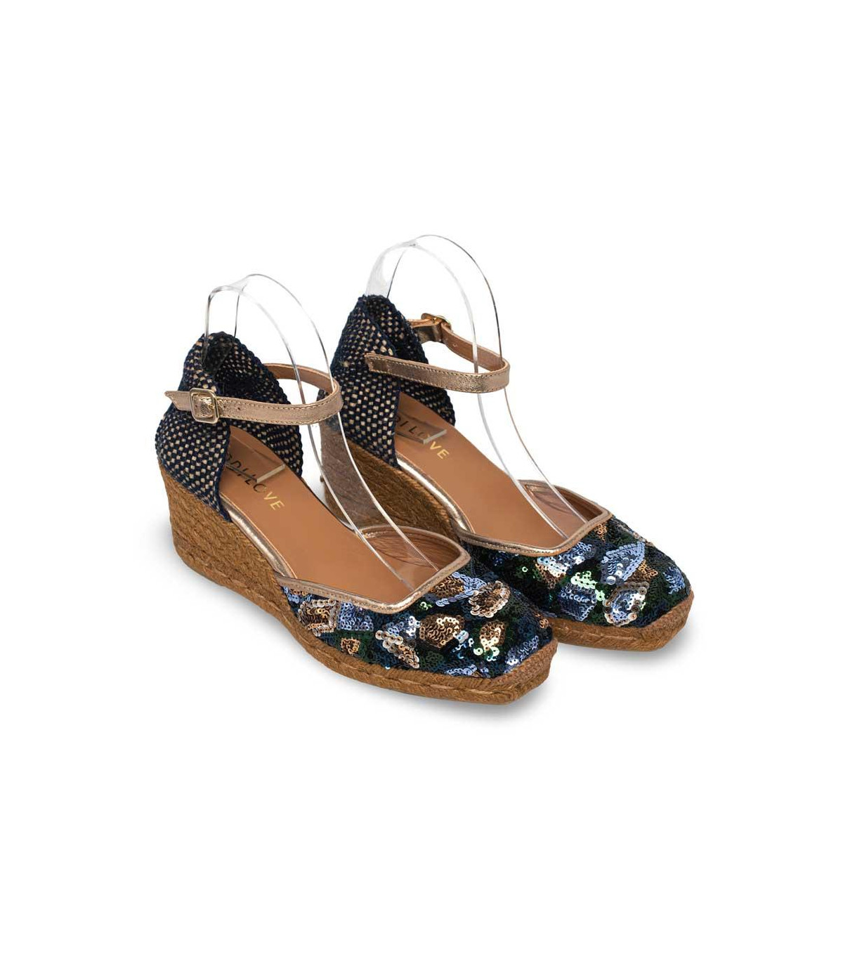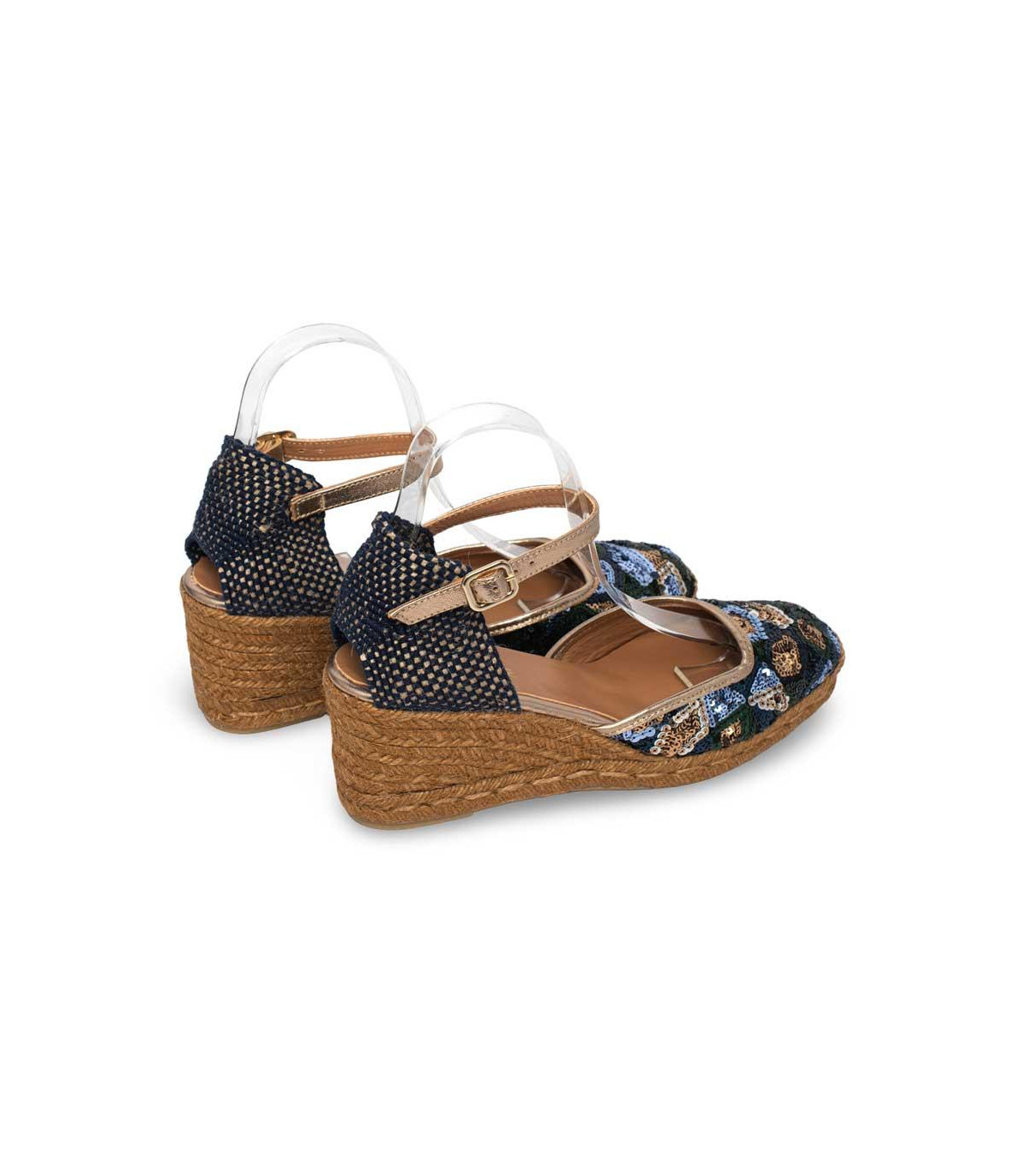 Sandalias casual con cuña de esparto de la firma Lodi | Material exterior: Textil | Forrado interior: Textil | Plantilla: Piel | Suela: Goma | Altura 7,5 cm de cuña | Hecho en España.