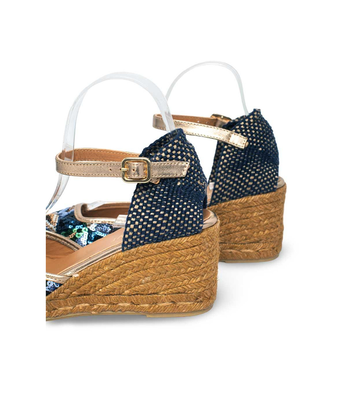 Sandalias de esparto con cuña de la firma Gaimo | Material exterior: Piel | Forrado interior: Piel | Plantilla: Piel | Suela: Goma | Altura: 7 cm de cuña | Hecho en España.