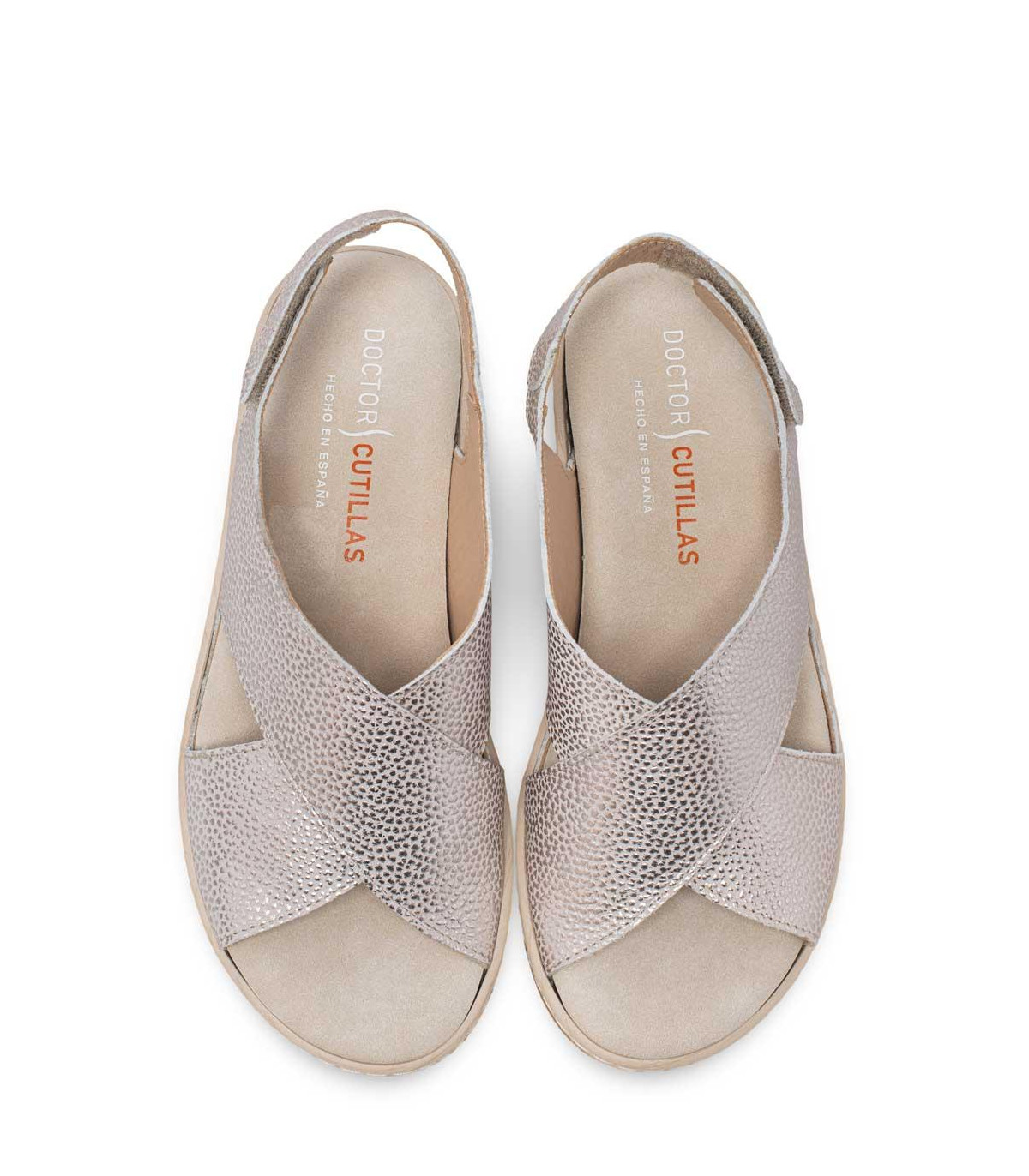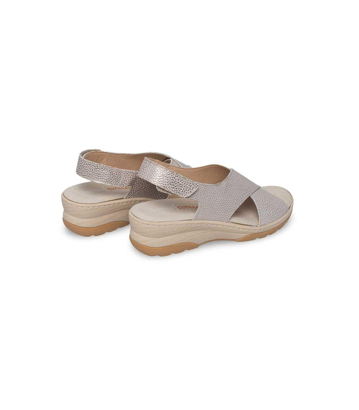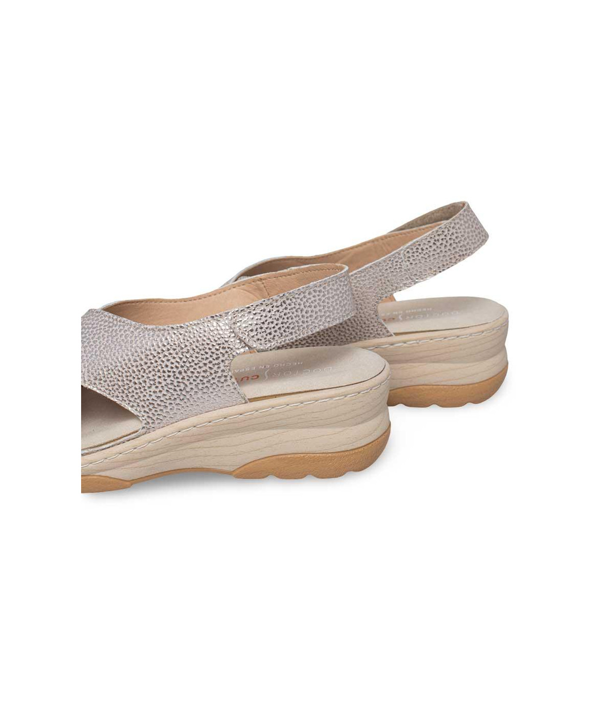 Sandalias casual con cuña y velcros de la firma Doctor Cutillas | Material exterior: Piel | Forrado interior: Piel | Plantilla: Microfibra (PLANTILLA EXTRAIBLE) | Suela: Goma | Altura 5,5 cm de cuña | Hecho en España.
