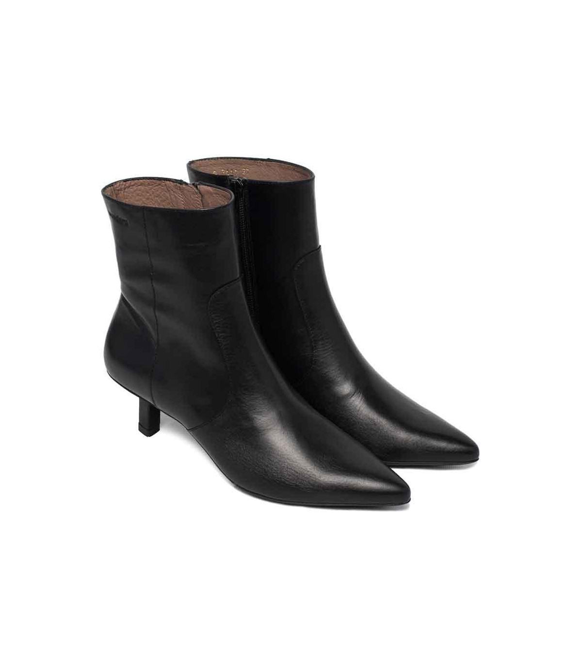 Botines de vestir con tacón de la firma Wonders | Material exterior: Piel | Forrado interior: Microfibra | Plantilla: Piel | Suela: Goma | Altura: 5,5 cm de tacón. Hecho en España.