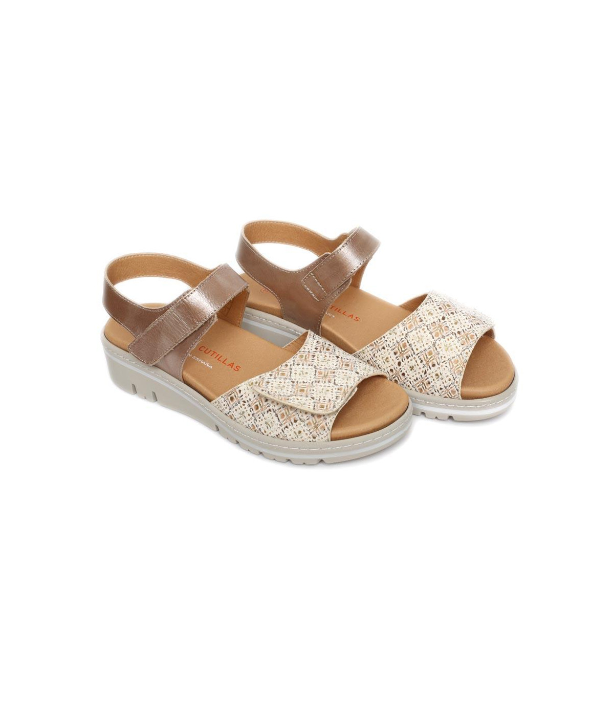 Sandalias casual con cuña y velcros de la firma Doctor Cutillas | Material exterior: Piel | Forrado interior: Textil | Plantilla: Microfibra (PLANTILLA EXTRAÍBLE) | Suela: Goma | Altura 3,5 cm de cuña | Hecho en España.
