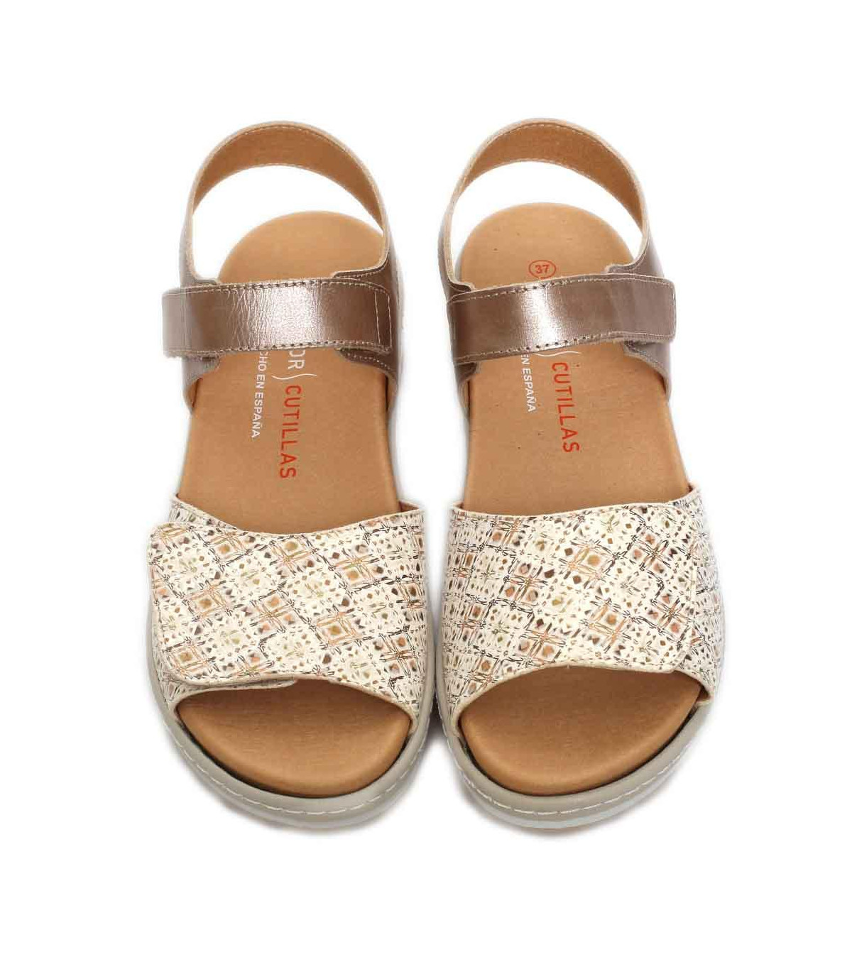 Sandalias casual con cuña y velcros de la firma Doctor Cutillas | Material exterior: Piel | Forrado interior: Microfibra | Plantilla: Microfibra (PLANTILLA EXTRAÍBLE) | Suela: Goma | Altura 5 cm de cuña. Hecho en España.