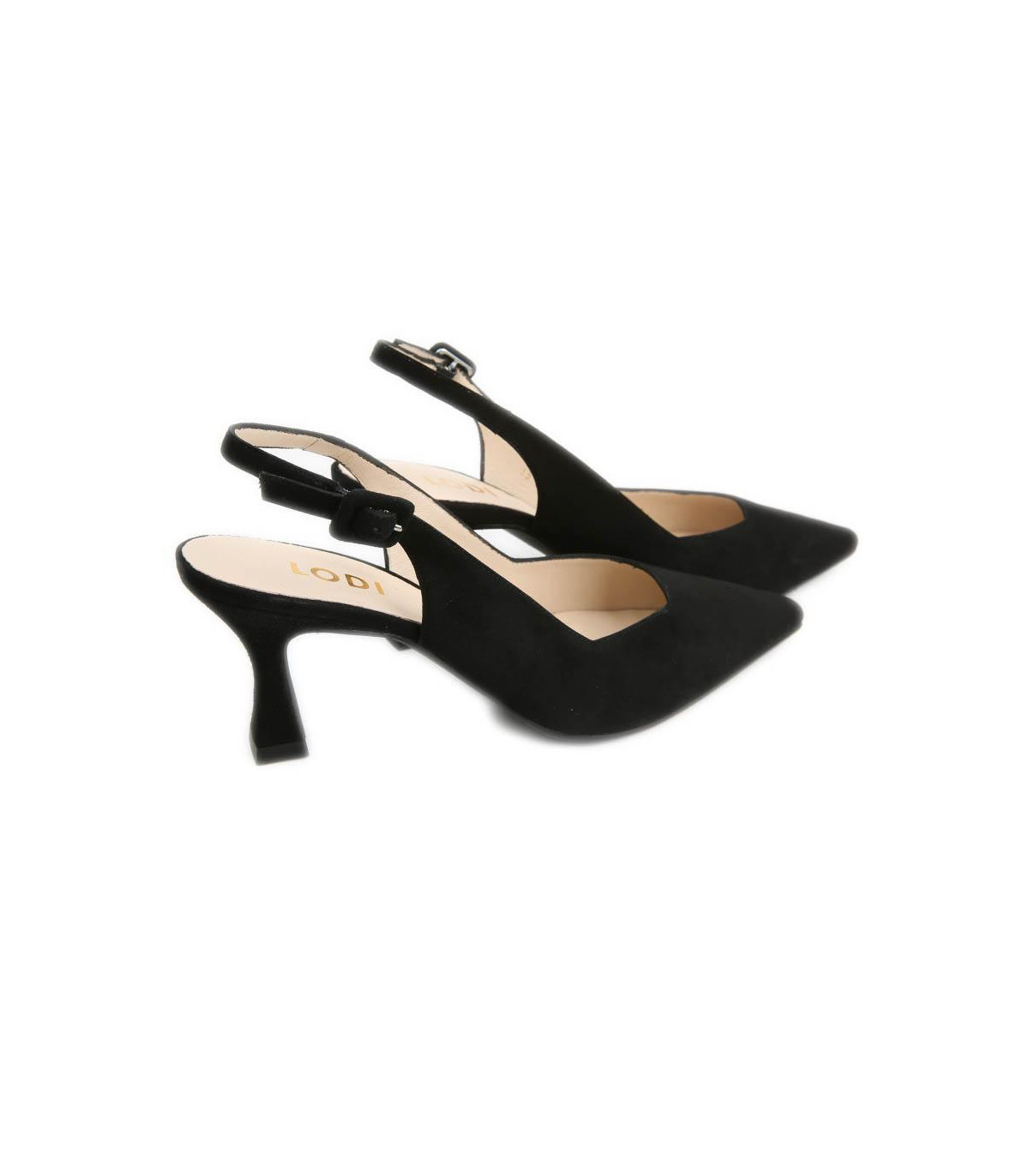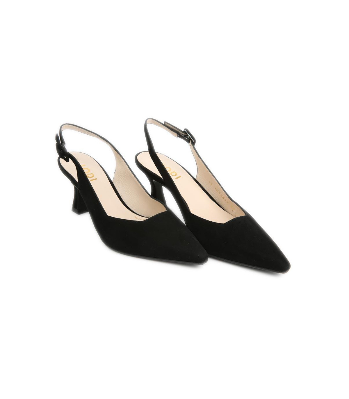 Zapatos de vestir con tacón y talón abierto de la firma Ángel Alarcón | Material exterior: Piel | Forrado interior: Piel | Plantilla: Piel | Suela: Sintético antideslizante | Altura 5,5 cm de tacón. Hecho en España.