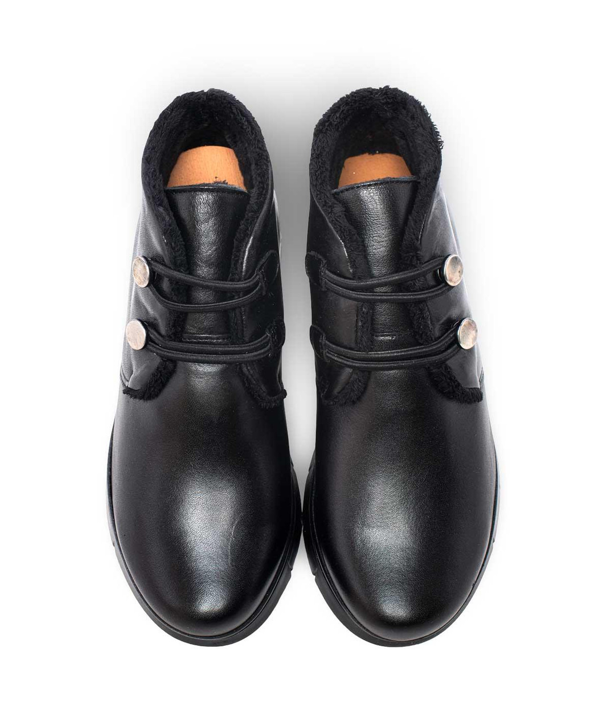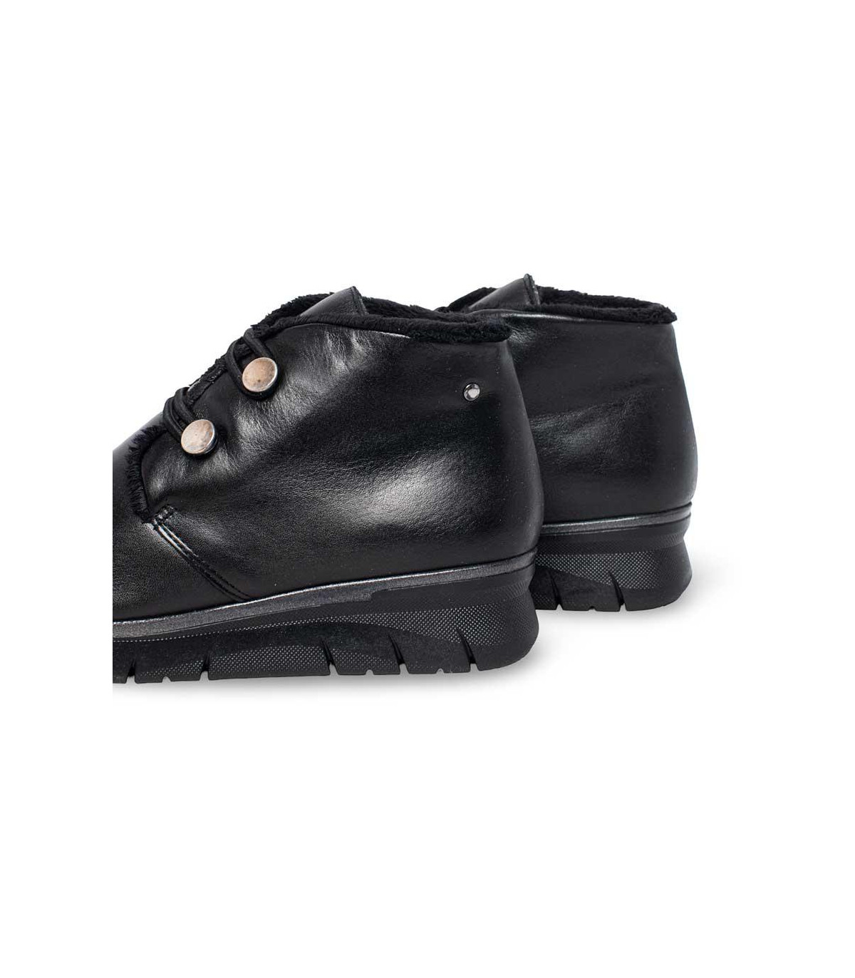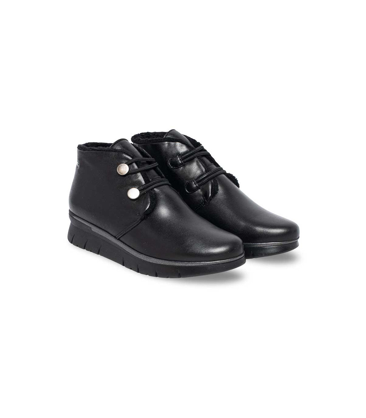 Botines con cuña y cordones elásticos de la firma Strover | Material exterior: Piel | Forrado interior: Pelo | Plantilla: Piel (PLANTILLA EXTRAÍBLE)| Suela: Goma | Altura: 3,5 cm de cuña. Hecho en España.
