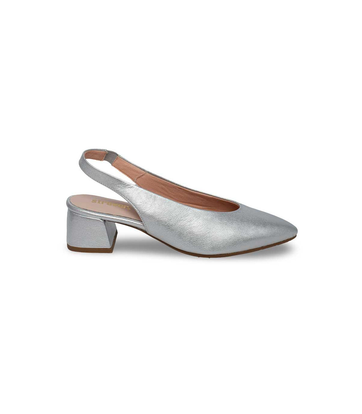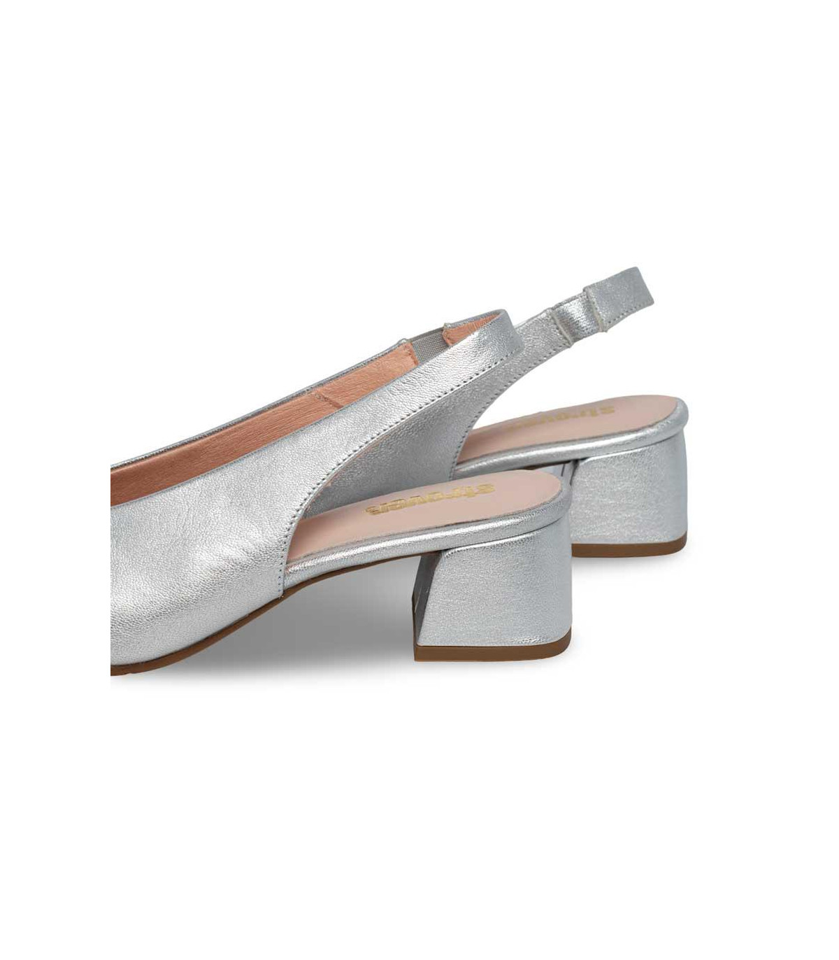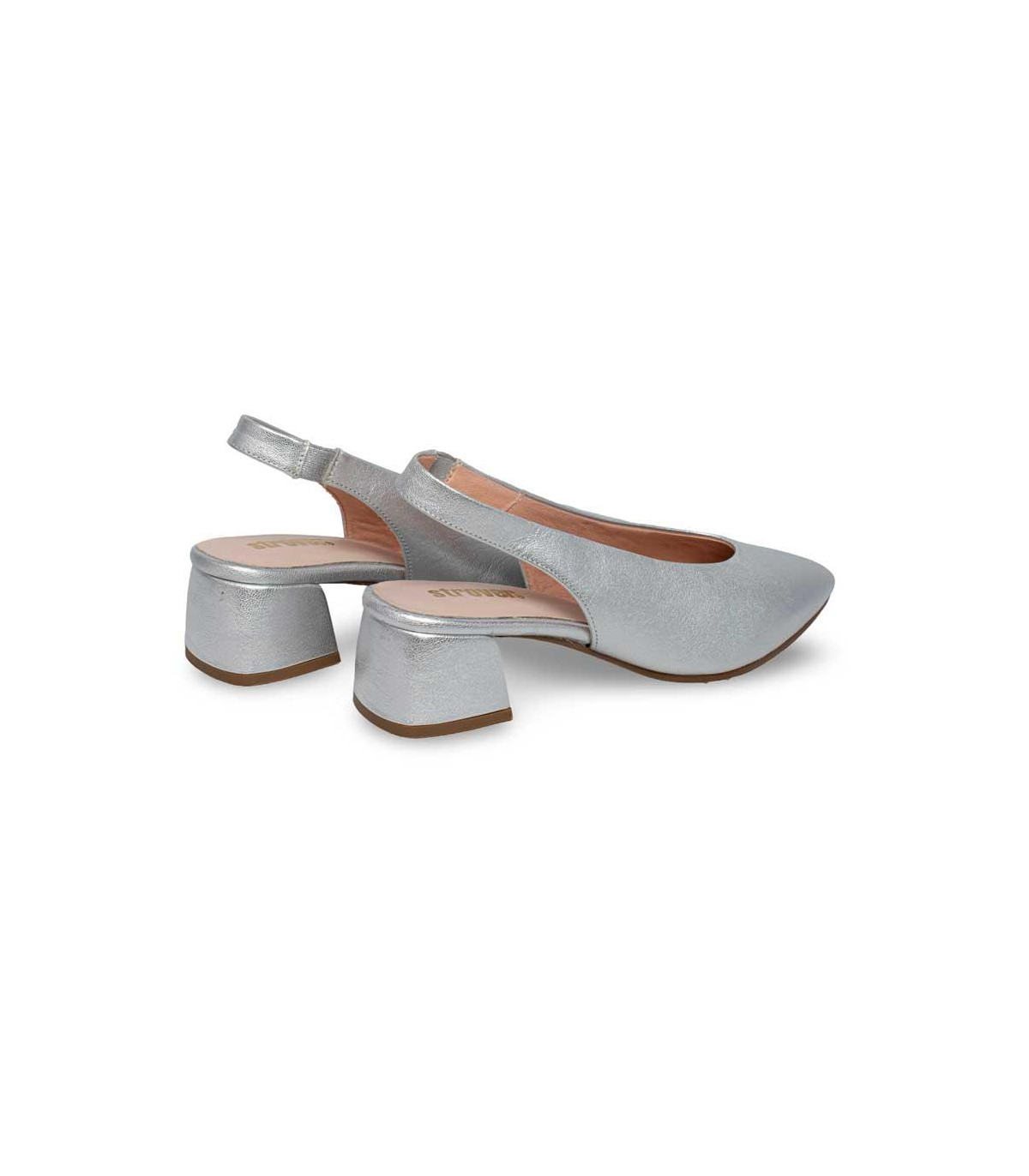 Zapatos de vestir con tacón y talón abierto de la firma Strover | Material exterior: Piel | Forrado interior: Microfibra | Plantilla: Piel | Suela: Goma | Altura: 6 cm de tacón | Hecho en España.
