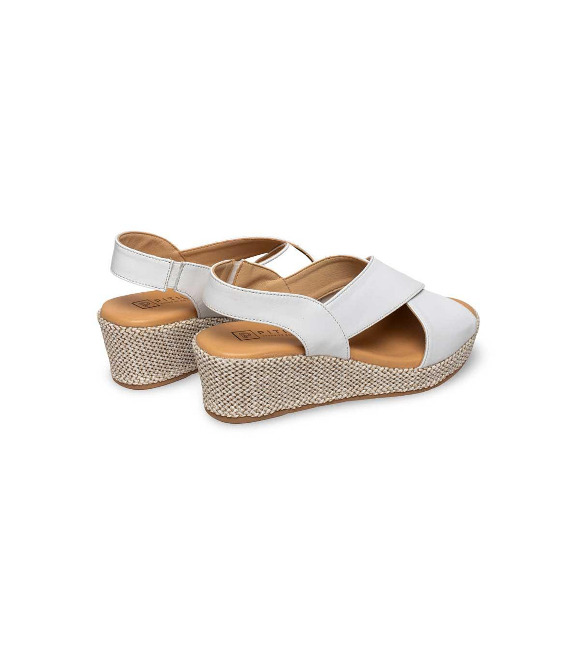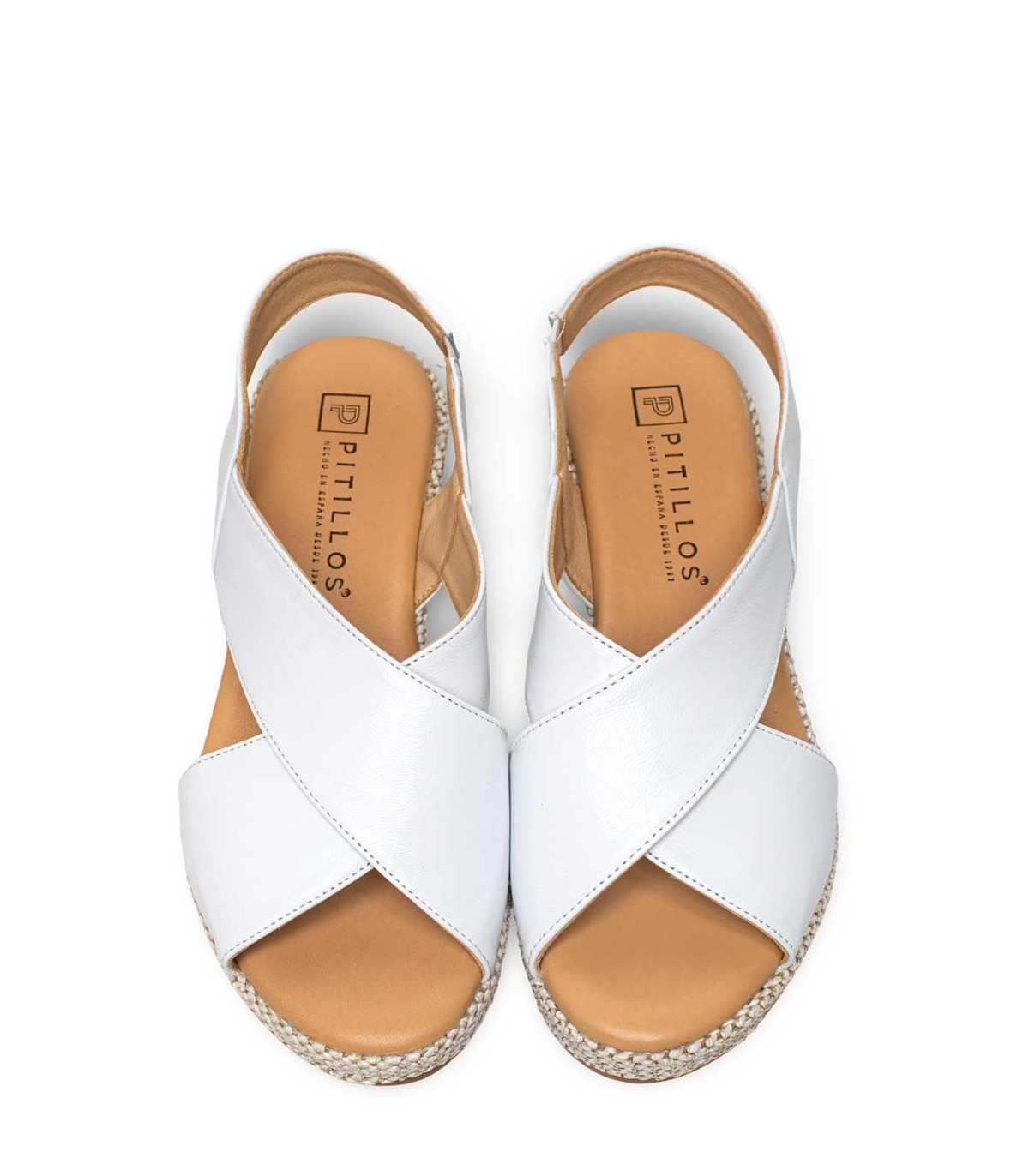 Sandalias con cuña y plataforma forrada de rafia de la firma Pitillos | Material exterior: Piel | Forrado interior: Microfibra | Plantilla: Microfibra | Suela: Goma | Altura: 5 cm de cuña | Hecho en España.