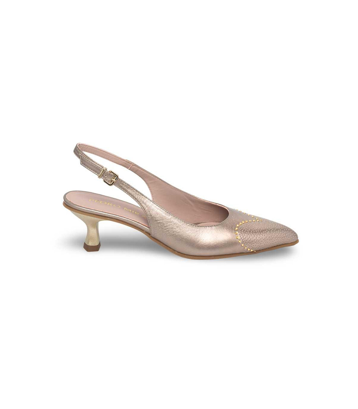 Zapatos de vestir con tacón y talón abierto de la firma Dansi | Material exterior: Piel | Forrado interior: Piel | Plantilla: Piel | Suela: Sintético antideslizante | Altura: 3 cm de tacón. Hecho en España.