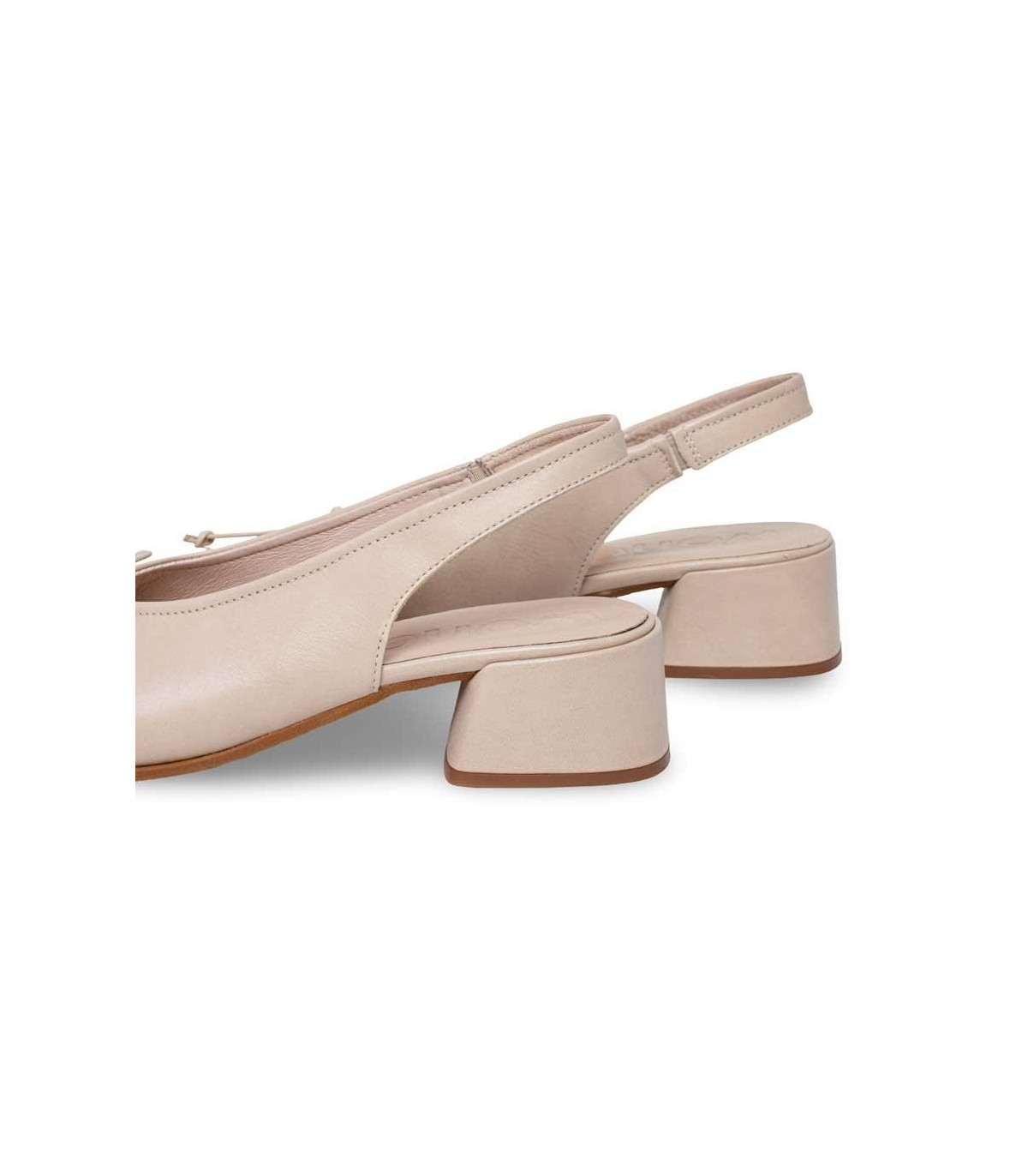 Zapatos con tacón y talón abierto de la firma Wonders | Material exterior: Piel | Forrado interior: Piel | Plantilla: Piel | Suela: Goma | Altura: 4,5 cm de tacón. Hecho en España.
