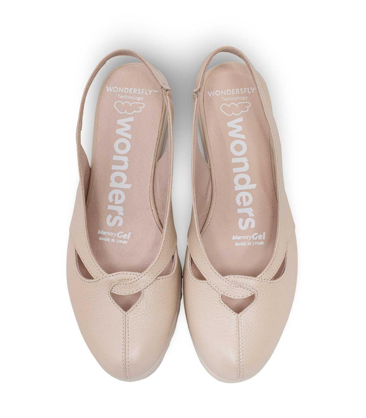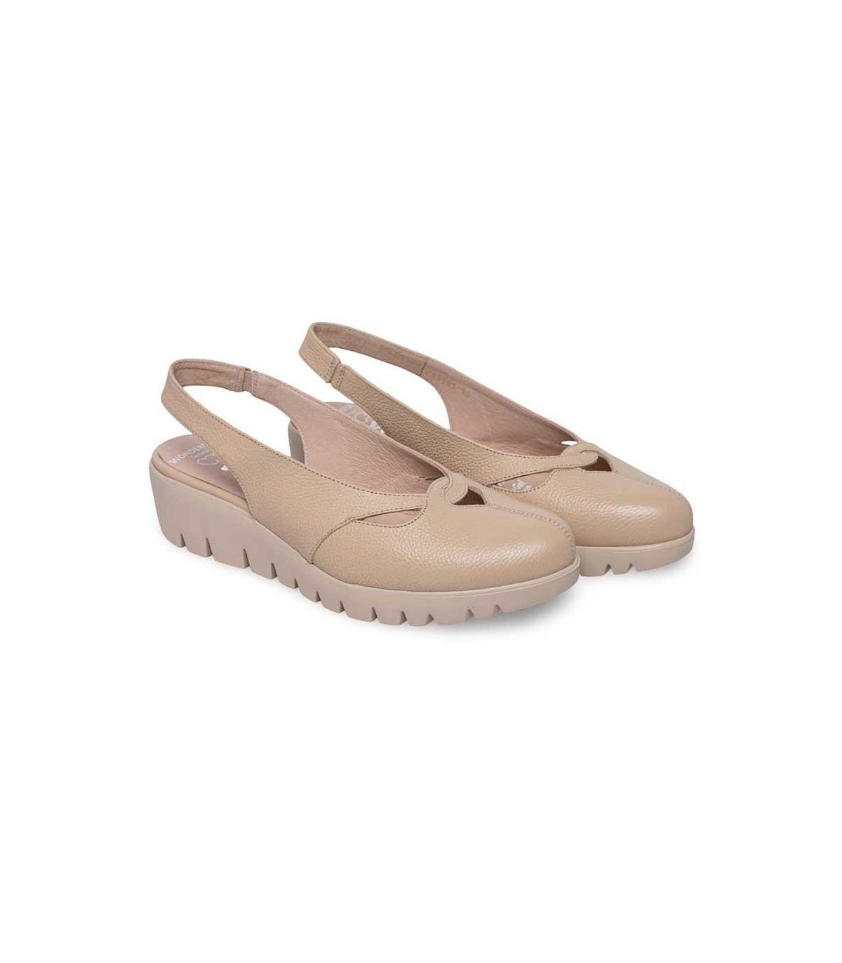 Zapatos con tacón y talón abierto de la firma Wonders | Material exterior: Piel | Forrado interior: Piel | Plantilla: Piel | Suela: Goma | Altura: 4,5 cm de tacón. Hecho en España.