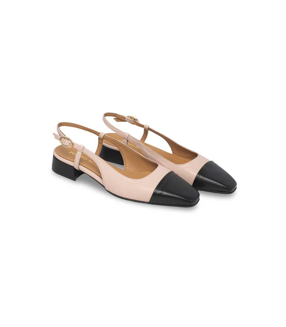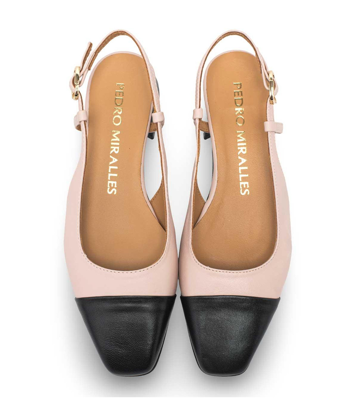Zapatos de vestir con tacón y talón abierto de la firma Pedro Miralles | Material exterior: Piel | Forrado interior: Piel | Plantilla: Piel | Suela: Goma | Altura: 3 cm de tacón | Hecho en España.