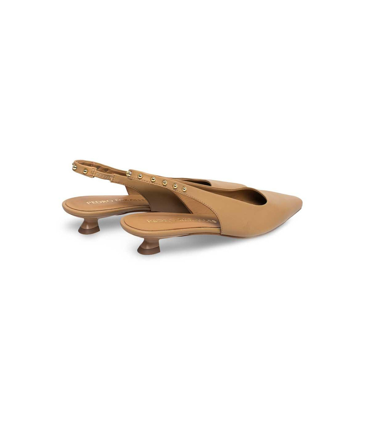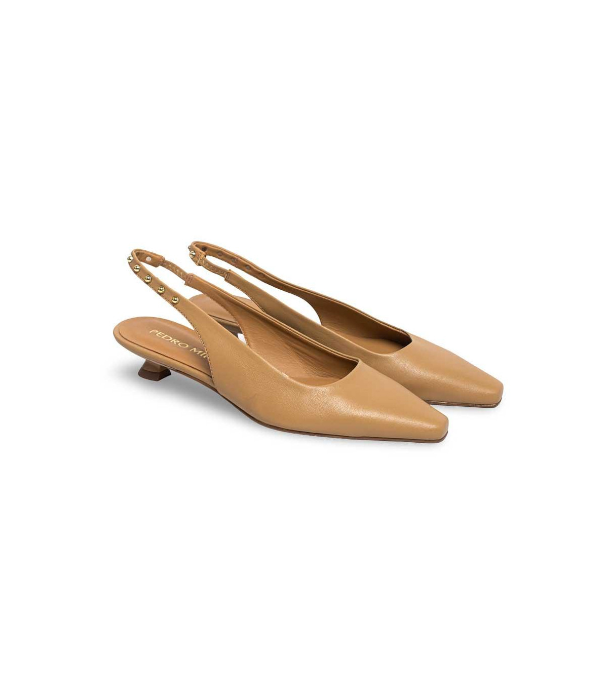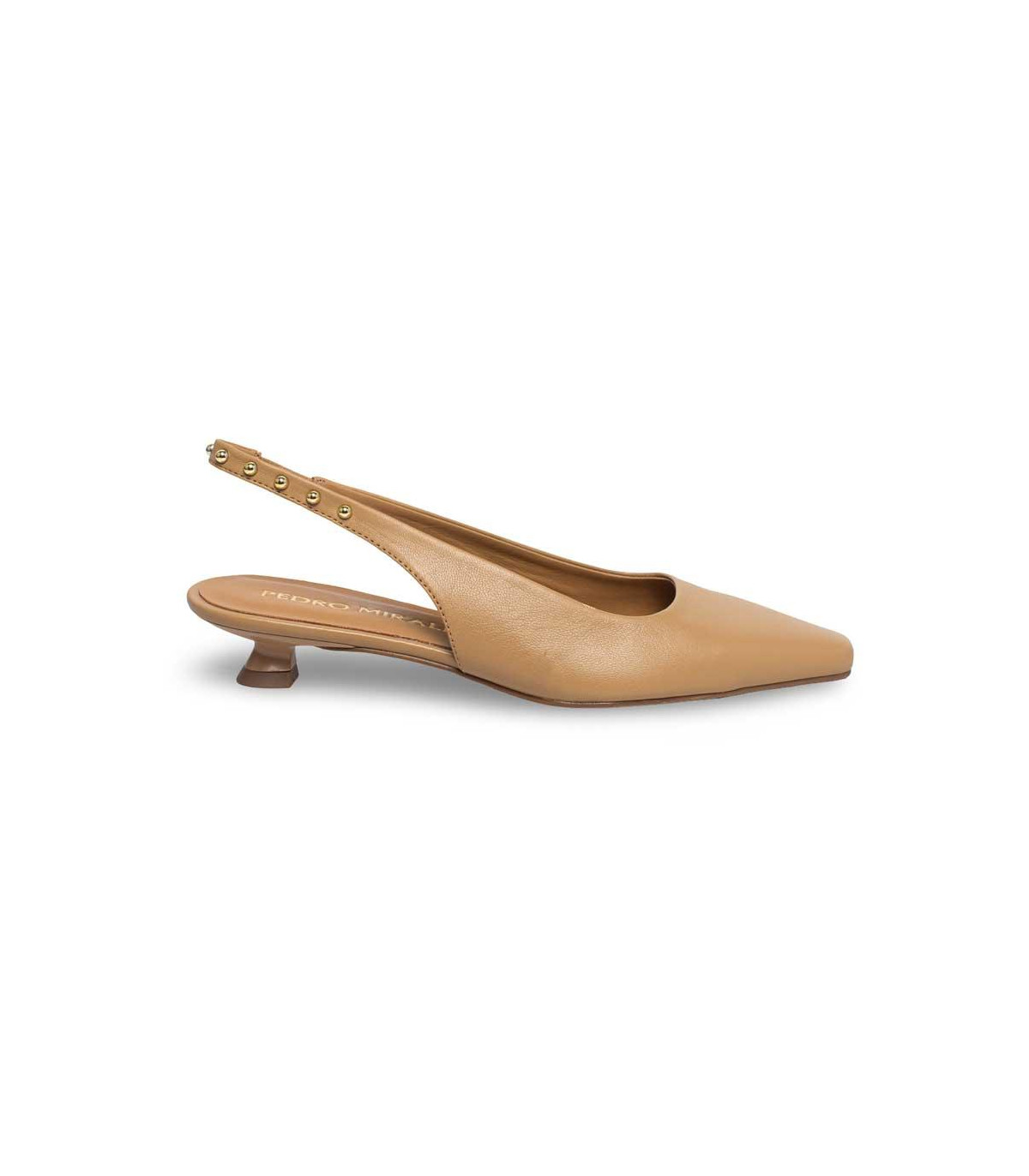 Zapatos de vestir con tacón y talón abierto de la firma Pedro Miralles | Material exterior: Piel | Forrado interior: Piel | Plantilla: Piel | Suela: Goma | Altura 6 cm de tacón | Hecho en España.