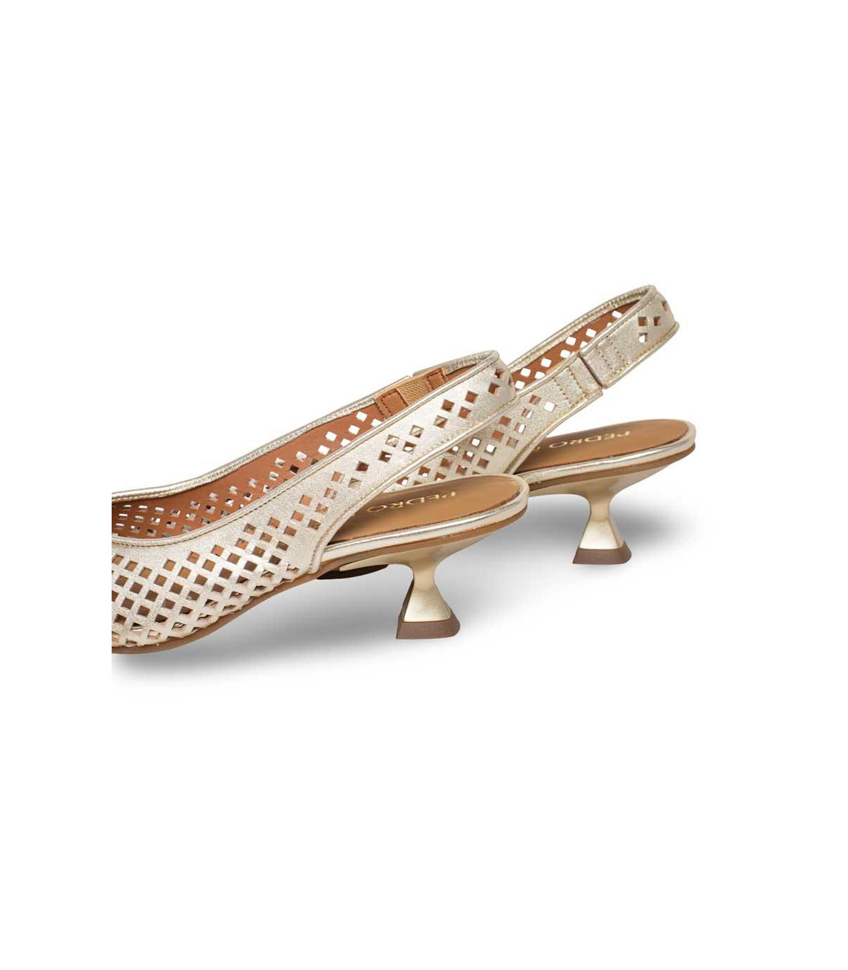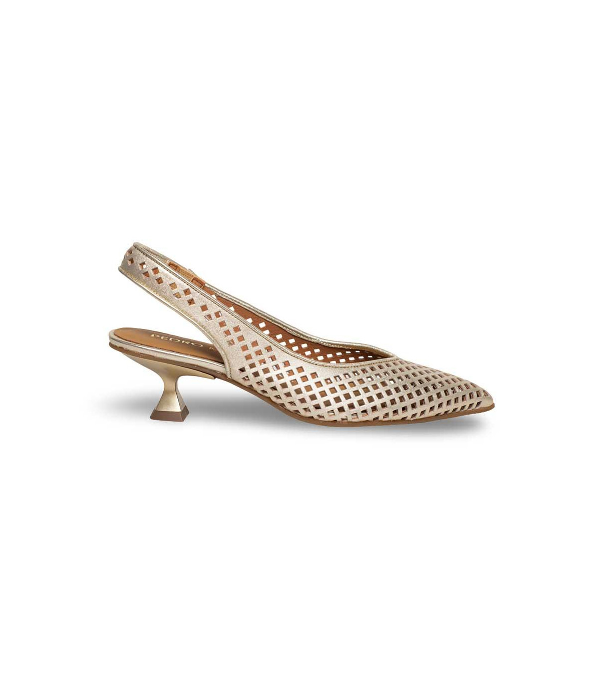 Zapatos de vestir con tacón y talón abierto de la firma Pedro Miralles | Material exterior: Piel | Forrado interior: Piel | Plantilla: Piel | Suela: Goma | Altura: 6 cm de tacón | Hecho en España.