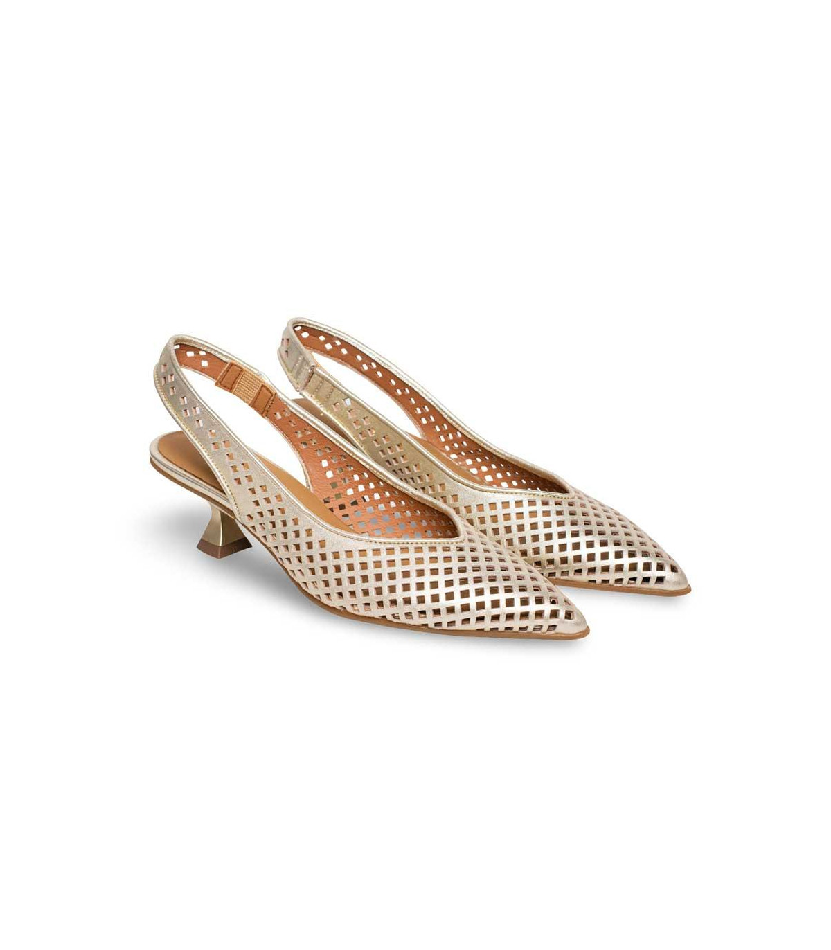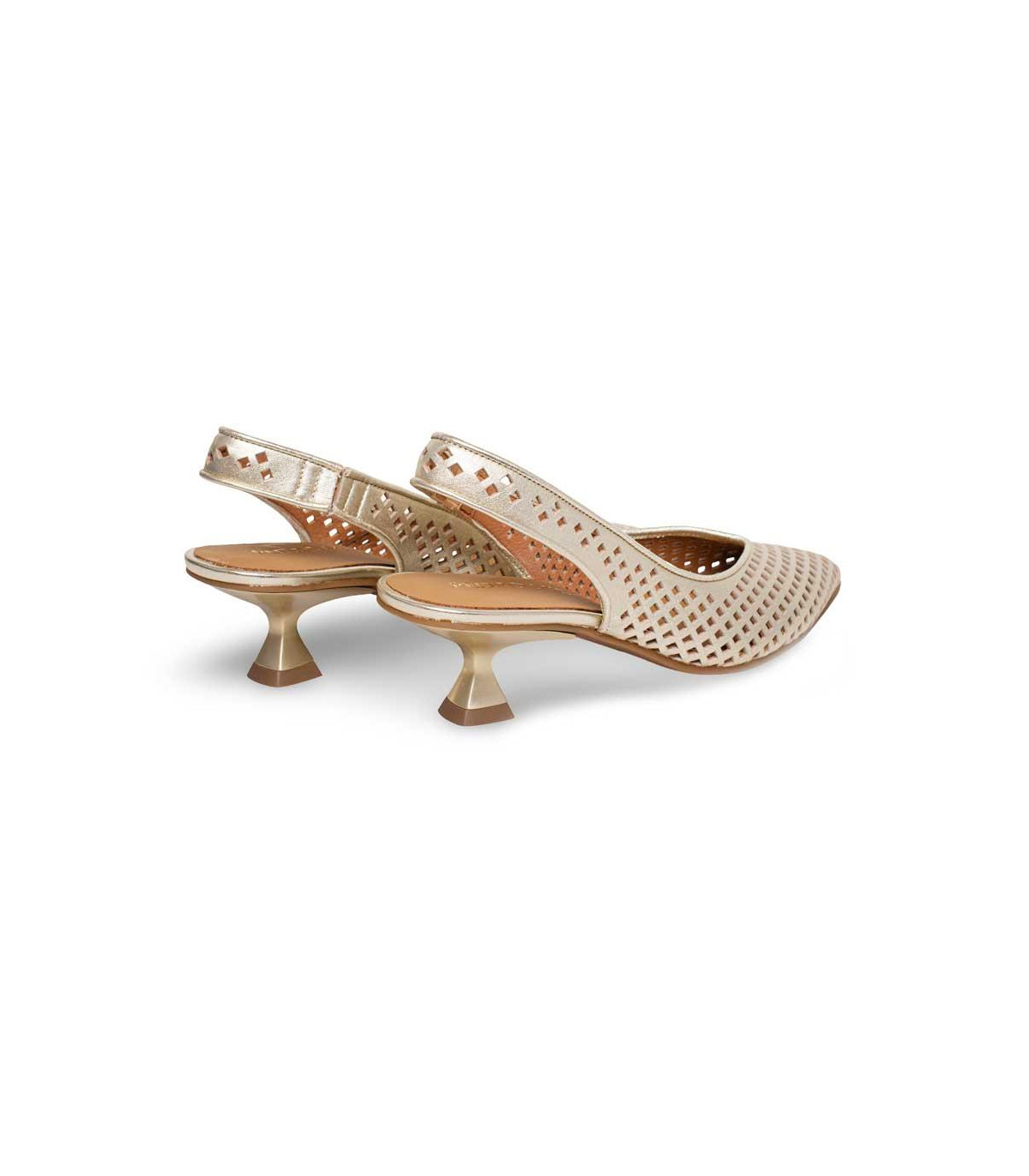 Zapatos de vestir con tacón y talón abierto de la firma Ángel Alarcón | Material exterior: Piel | Forrado interior: Piel | Plantilla: Piel | Suela: Sintético antideslizante | Altura 5,5 cm de tacón. Hecho en España.