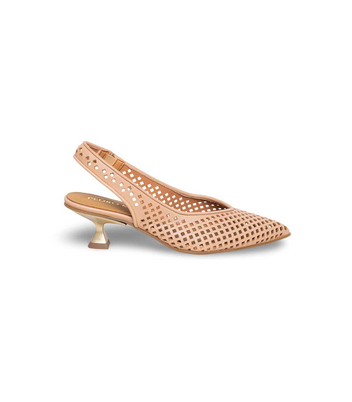Zapatos de vestir con tacón y talón abierto de la firma Pedro Miralles | Material exterior: Piel | Forrado interior: Piel | Plantilla: Piel | Suela: Goma | Altura 6 cm de tacón | Hecho en España.