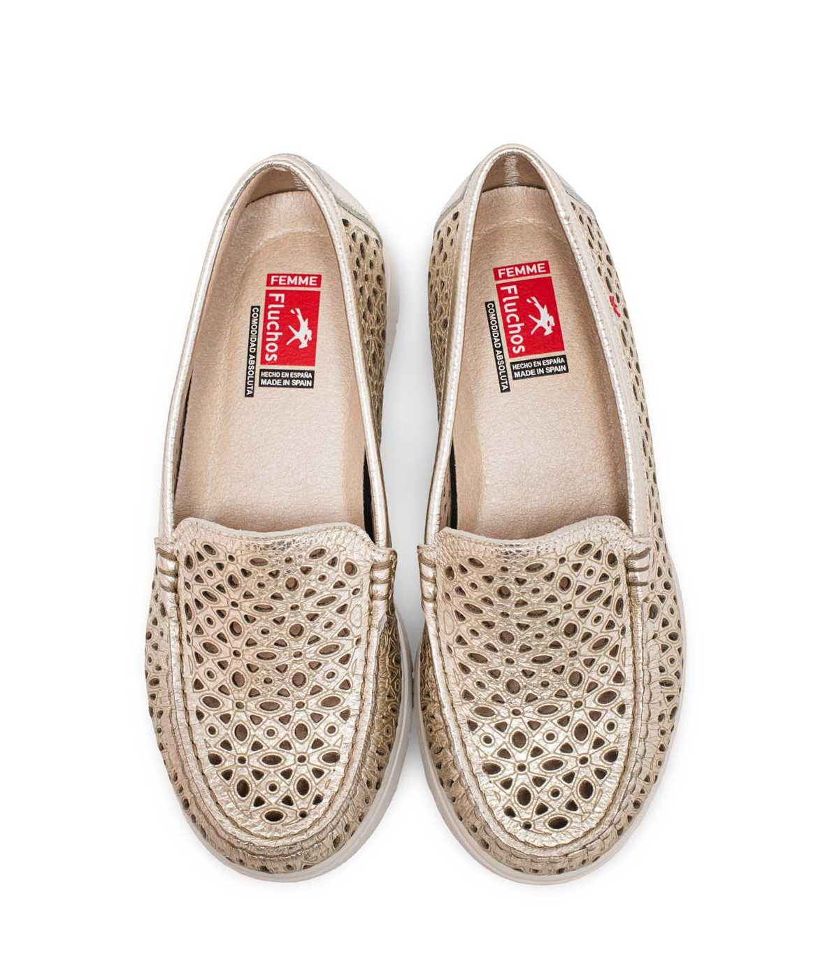 Zapatos mocasines con cuña y plataforma de la firma Fluchos | Material exterior: Piel | Forrado interior: Microfibra | Plantilla: Microfibra (PLANTILLA EXTRAÍBLE) | Suela: Goma | Altura: 3,5 cm de cuña. Hecho en España.