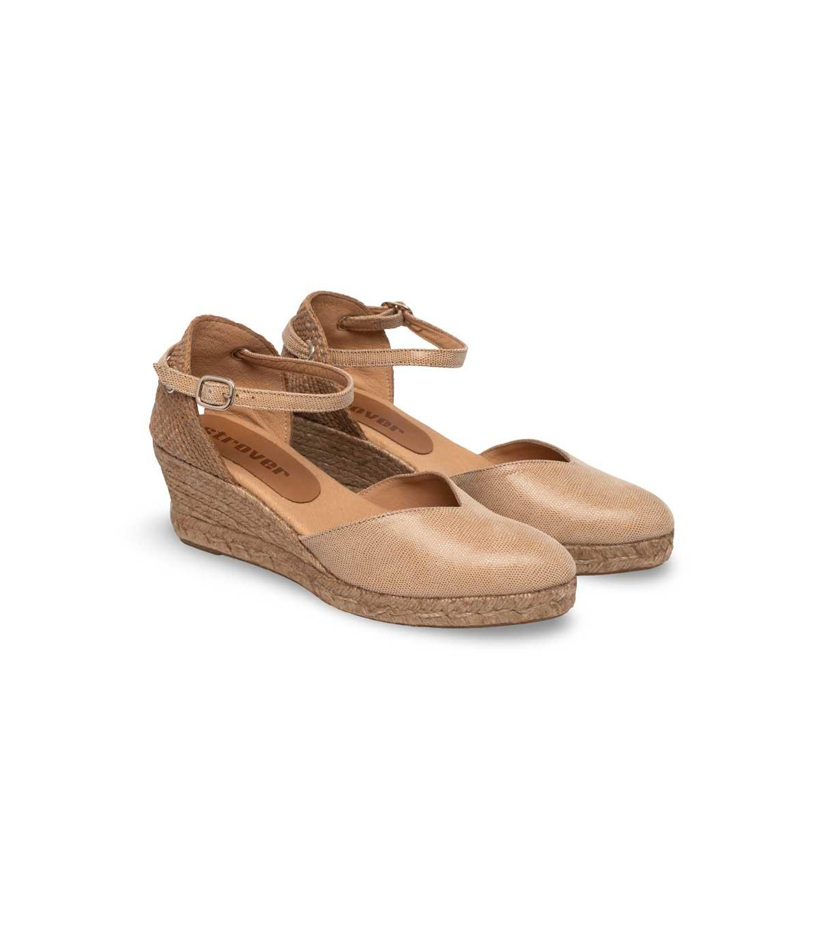 Sandalias con cuña de esparto de la firma Strover | Material exterior: Piel | Forrado interior: Piel | Plantilla: Microfibra | Suela: Goma | Altura: 6 cm de cuña | Hecho en España.