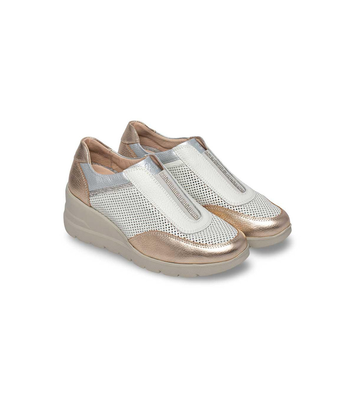 Zapatos casual con cuña y cordones elásticos de la firma Fluchos | Material exterior: Piel | Forrado interior: Microfibra | Plantilla: Microfibra (PLANTILLA EXTRAÍBLE) | Suela: Goma | Altura: 3 cm de cuña. Hecho en...